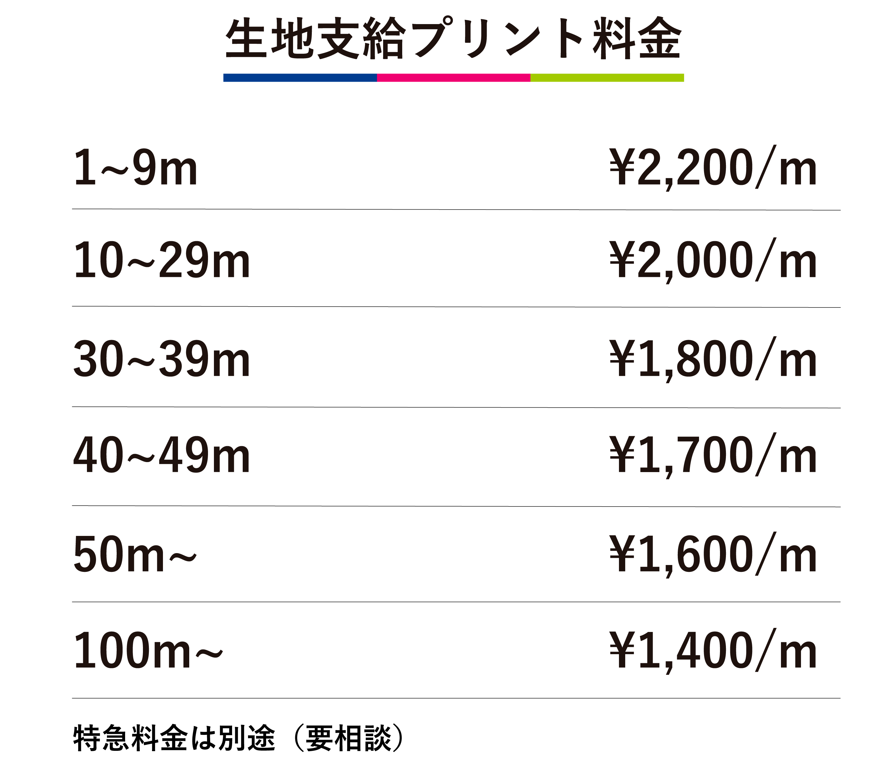 プリント料金表